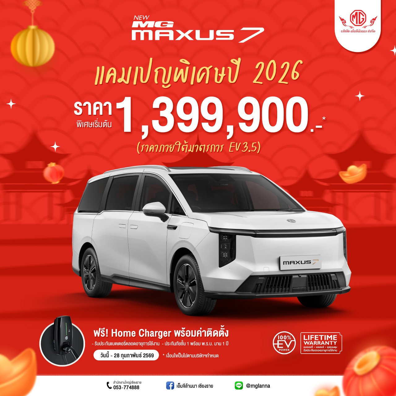 ราคาเริ่มต้น 1,399,900 บาท (ภายใต้มาตรการใหม่ EV 3.5)