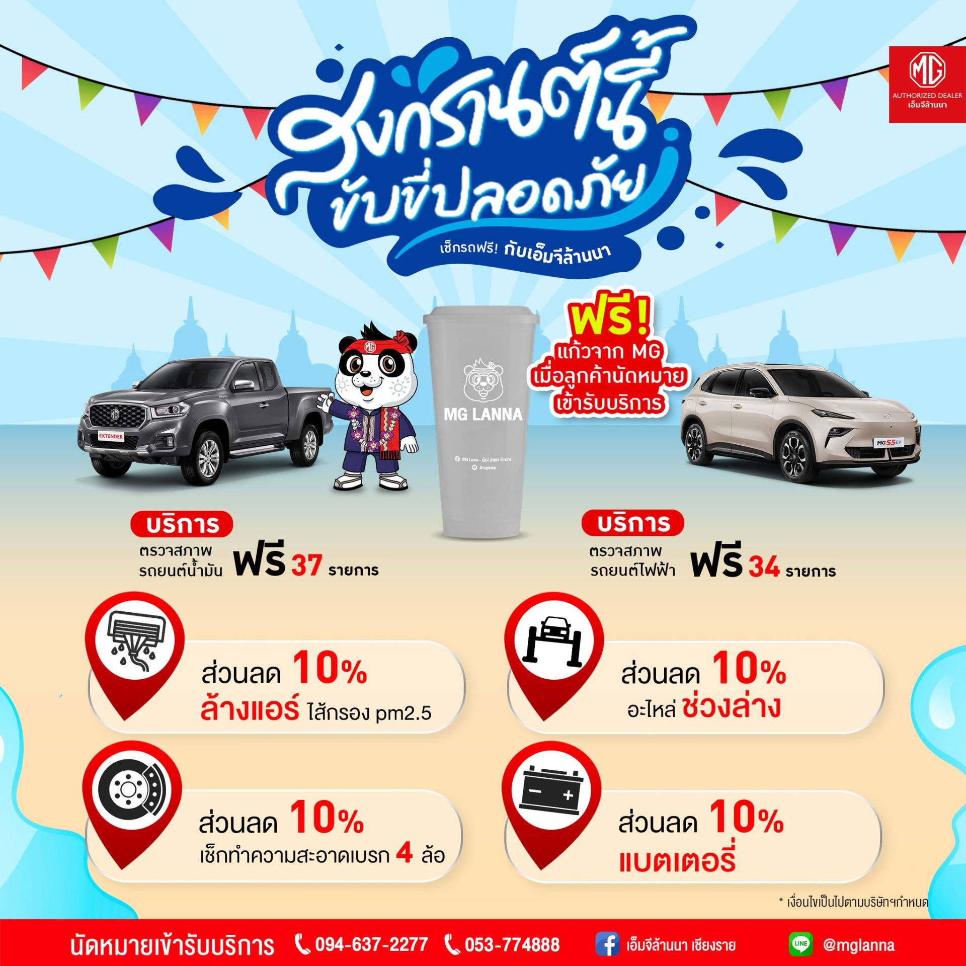 #MGLanna #MGเชียงราย #สงกรานต์2026 #ตรวจสภาพรถฟรี #ขับขี่ปลอดภัย #โปรโมชั่นรถยนต์
